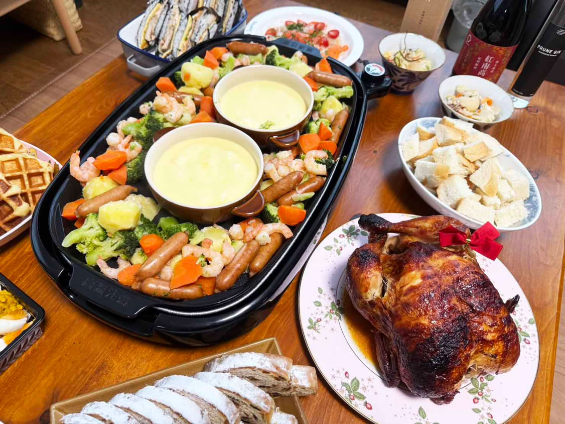 パーティでは、チーズフォンデューや