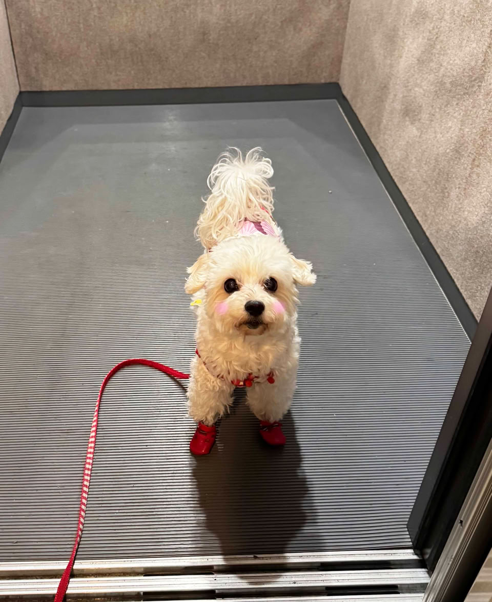 2025年10月3日(金)どんどん、さむくなってまちゅー。きょうは、アレクサがさいていきおん「11ど」っていっまちゅー。ちゅーちゃん、おさんぽのときはちゃんとおんどきいて、でかけるのん。ひっこしてからエレベーターにのってるのん。おくつもしっかりはいてまちゅー。