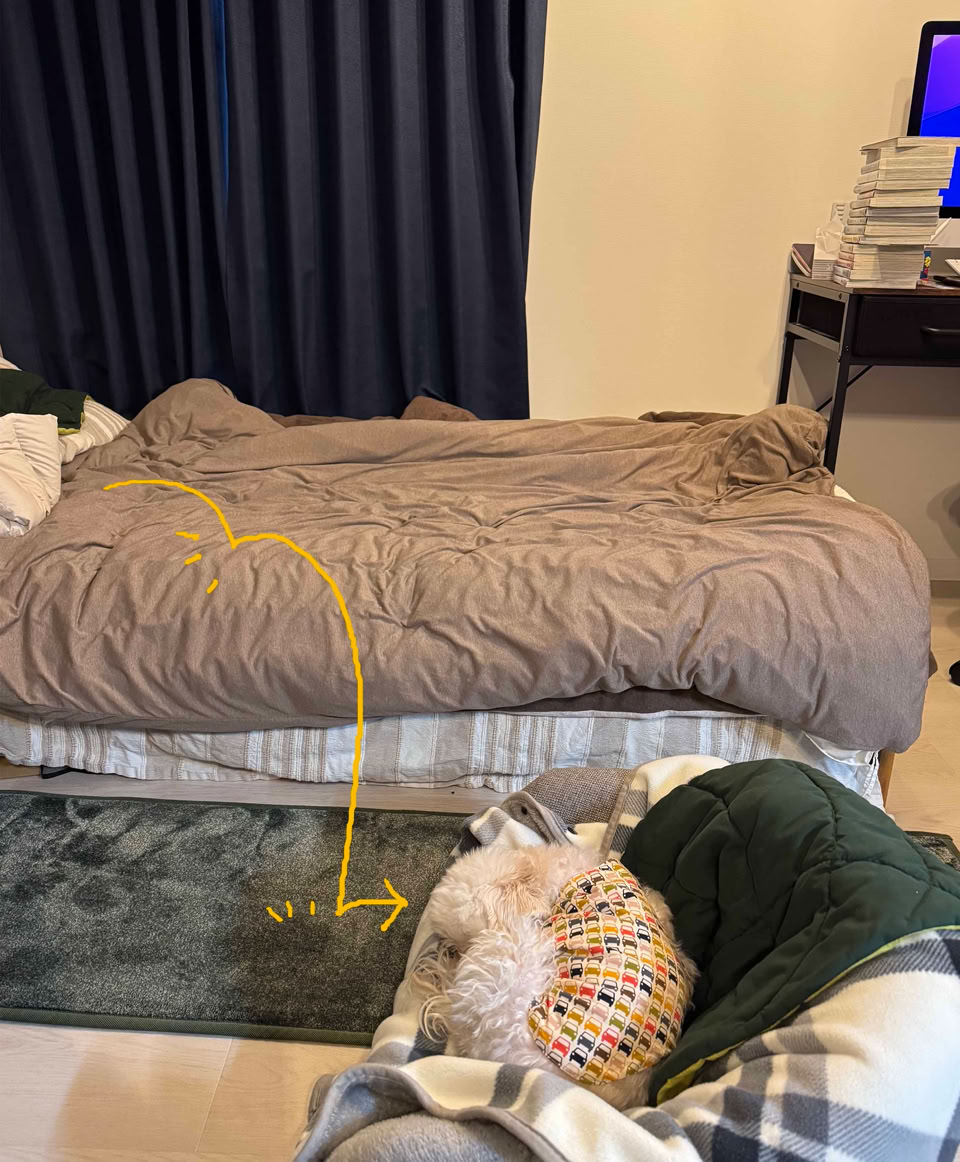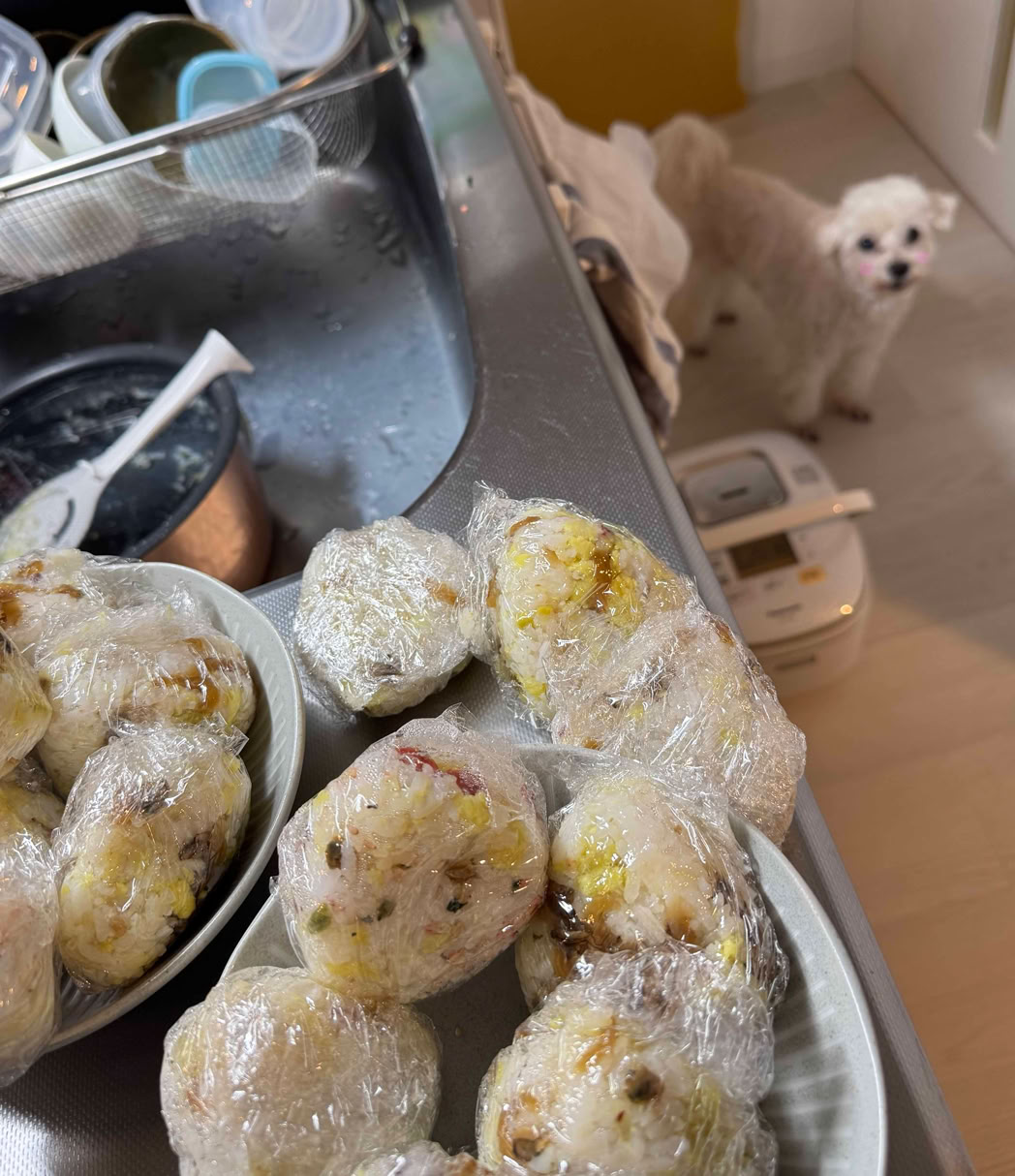 2026年1月10日(土)ちゅーちゃん、キッチンにいるのん。ママがなにかつくってるときはいろいろおっこちてくるんでちゅー。ときどき、おにぎりにチーズとかソーセージとかきざんでいれてるのん。ほかほかなおにぎりははんぶん、れいとうこにいれられてママのいっしゅうかんのごはんになるのん。しっかりものなんでちゅー。