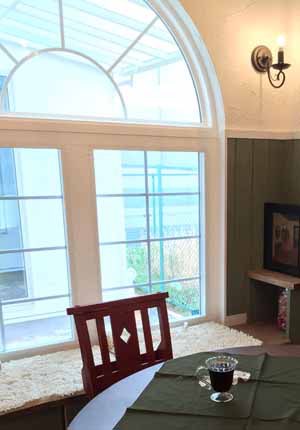 お客さまたちは、椅子に座らずに、窓辺のベンチに座る方が多い。