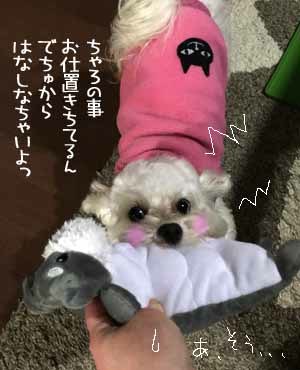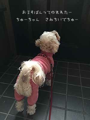 ちゅーちゃんは、夜までひとりでお留守番でちたー。