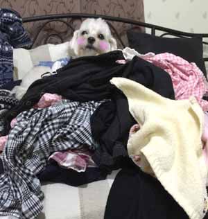 今日も、乾燥機から出てきたての洗濯物の中で