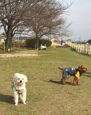 きのう、遠くの公園までカートでつれていってもらいまちた。
